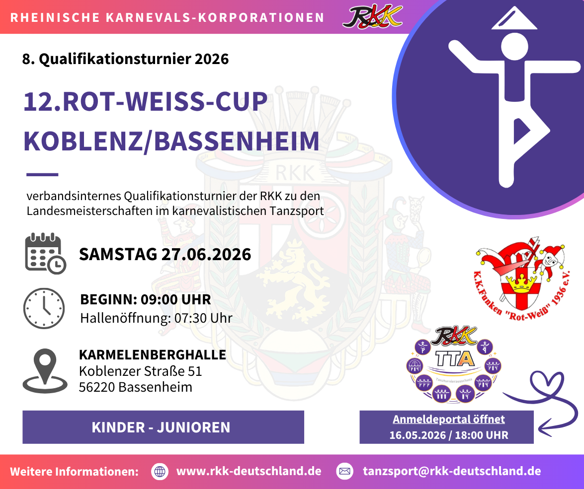 Turnierleitung: Alexander Brauneck & Jörg Welling (tanzturnier@kk-funken-rot-weiss.de)
